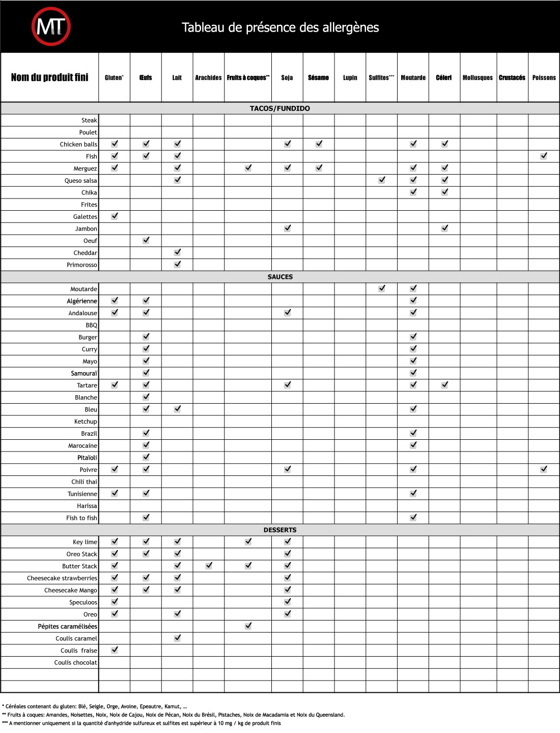 Présence des allergènes